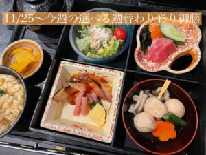 11/25〜今週の【選べる週替わり彩り御膳】《日本酒/ほっこり/霞ヶ関/虎ノ門/個室/ランチ/懇親会/週替わり》