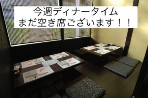 今週ディナータイムまだ空き席ある日ございます!お気軽にお問い合わせ下さい。