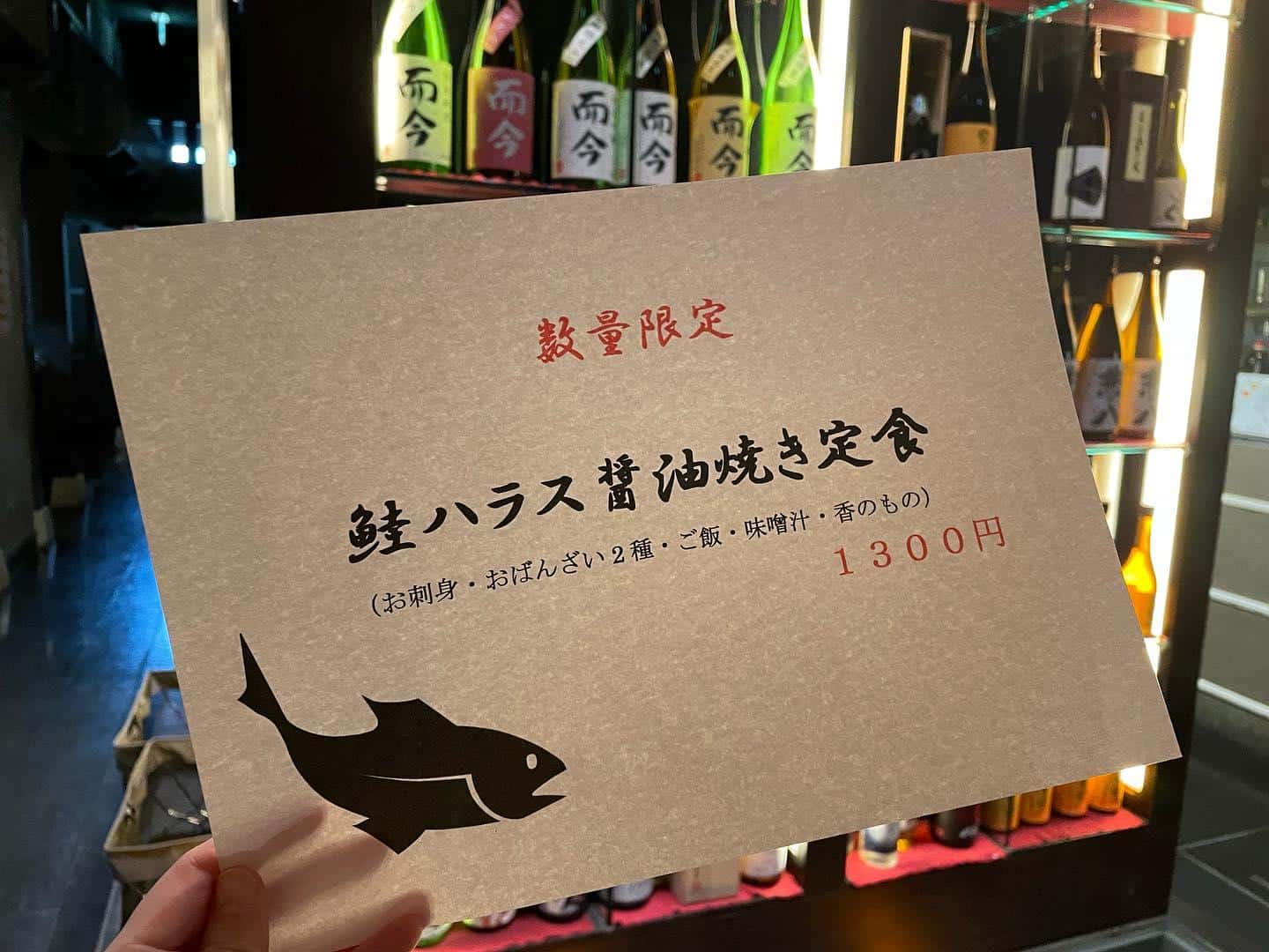 本日限定!【鮭ハラス醤油焼き定食】《日本酒/ほっこり/霞ヶ関/虎ノ門/個室/ランチ/懇親会/忘年会/鮭ハラス》
