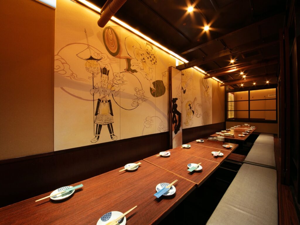 餐厅洋溢着轻松惬意的日式氛围。还提供大型宴会座位,每区最多可容纳 22 人,过道最多可容纳 32 人,二楼最多可容纳 50 人。我们还为约会等私人场合以及商务娱乐和晚宴等商务场合提供座位,请随时与我们联系,了解更多信息。