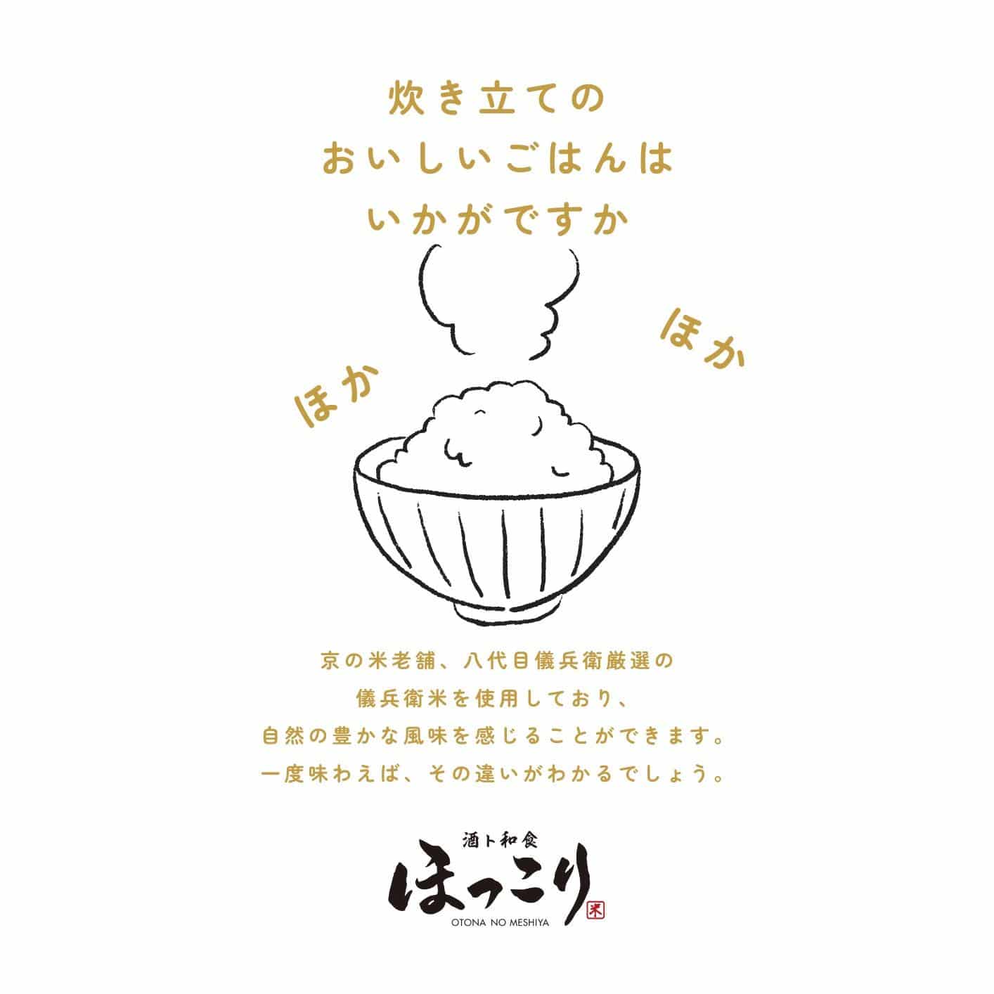 ほっこりルーセントタワー店は“酒ト和食”をコンセプトに、お米のプロ「八代目儀兵衛」さんにご協力いただいた、こだわりの土鍋ご飯/鯛めしを味わえる和食居酒屋です。